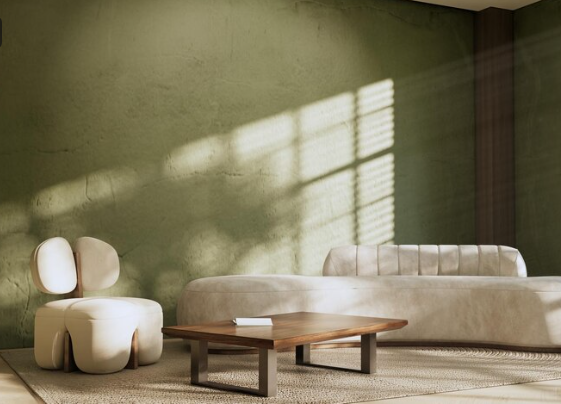 Warm olive menjadi representasi tren warna yang terinspirasi dari alam di tahun 2026. Warna ini memadukan nuansa hijau dengan sentuhan hangat sehingga tidak terasa dingin atau terlalu bold. Warm olive memberikan kesan tenang, seimbang, dan modern saat diaplikasikan pada dinding ruangan. Warna ini sangat cocok untuk ruang keluarga atau ruang makan karena mampu menciptakan suasana yang rileks dan bersahaja. Dengan tambahan elemen kayu dan tanaman hias, warna ini dapat membuat ruangan terasa lebih hidup sekaligus hangat. Seolah dapat menciptakan koneksi visual dengan alam. -