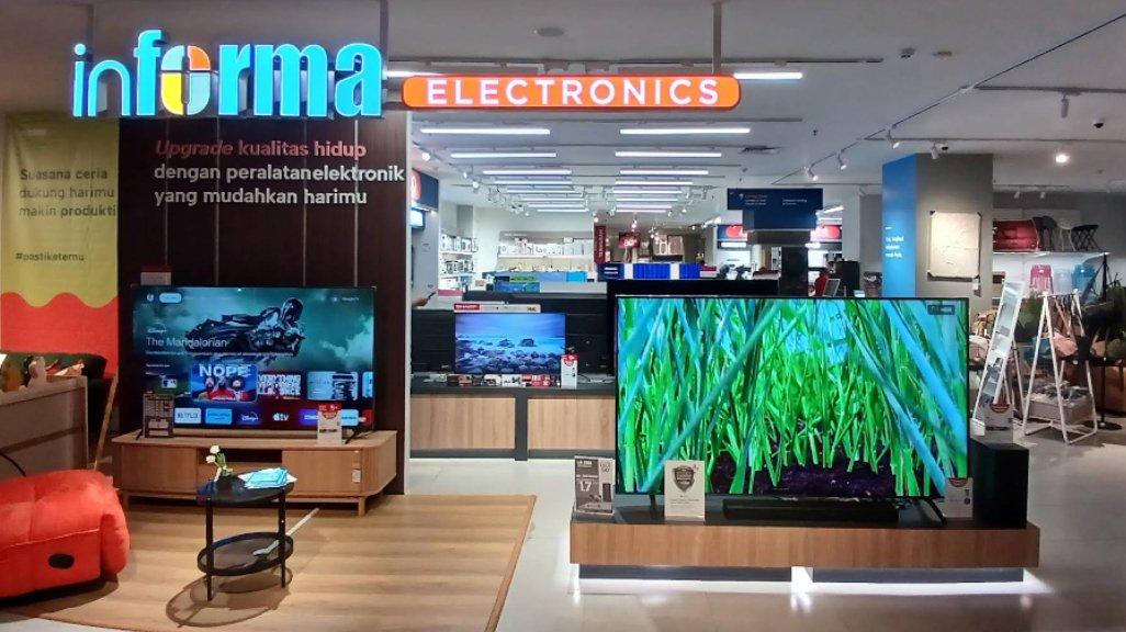 Informa adalah ritel furnitur, gaya hidup, perabotan, hingga elektronik rumah tangga terlengkap dan ternama yang telah mendirikan banyak gerai di berbagai daerah di Indonesia. Di sini, kamu bisa menemukan perlengkapan elektronik rumah tangga seperti TV, AC, kipas angin, air cooler, dispenser, blender, freezer, kulkas, audio, catokan, mesin cuci, microwave, oven elektrik, teko listrik, setrika, steamer, magic com (rice cooker/penanak nasi digital), toaster, coffee maker, air purifier (pembersih udara), vacuum cleaner (penyedot debu), humidifier, water heater (pemanas air), air fryer, hingga speaker dari brand-brand terpercaya seperti Panasonic, Gree, Electrolux, Kels, Aqua, Philips, LG, Toshiba, Modena, Polytron, Sony, TCL, Sharp, Daikin, Samsung, Hisense, dsb dengan harga kompetitif.